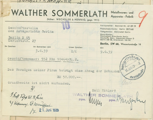 Fabriken hade tidigare ägts av den judiska affärsmanen Efim Wechsler, men nazistpartiet lät Sommerlath ta över den i en s.k. arifiernigs-process 1939, plundringen och utträngandet av judarna ur det ekonomiska livet i Tyskland under nazismen.